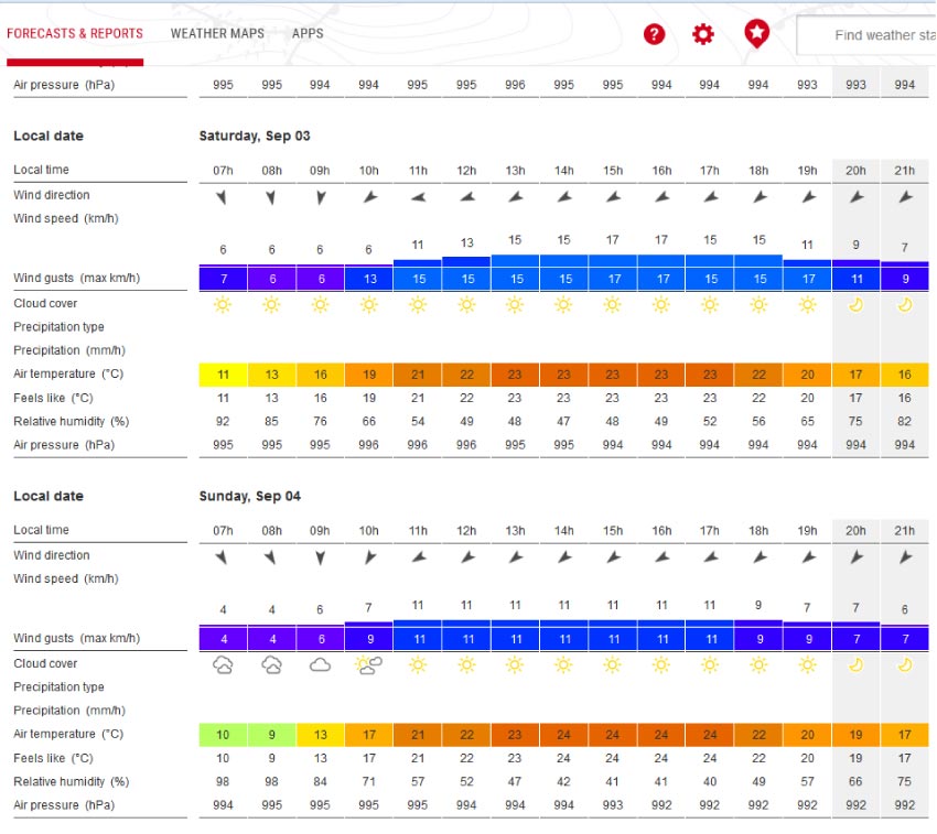 The weather is looking pretty good for a practice day on Saturday, and then for the event itself on Sunday. See Superforcast below. I hope to be there both days, arriving 8AM ish.
